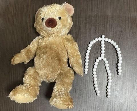 トイスケルトンは直訳すると「おもちゃの骨」となりその名の通り、ぬいぐるみなどの芯に使用されます。ぬいぐるみにトイスケルトンを入れ込むことにより、自由自在にポーズをとることが可能となります。